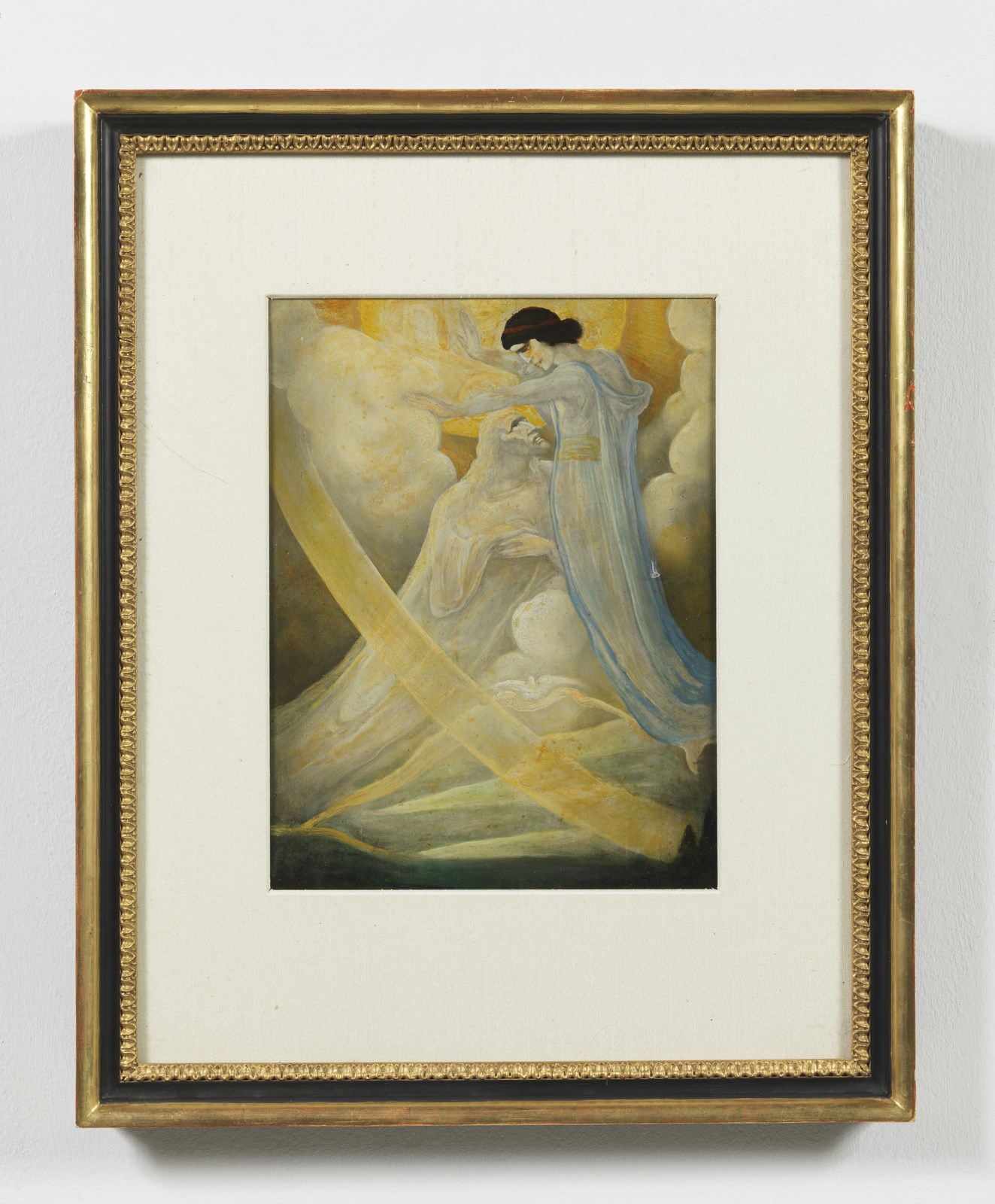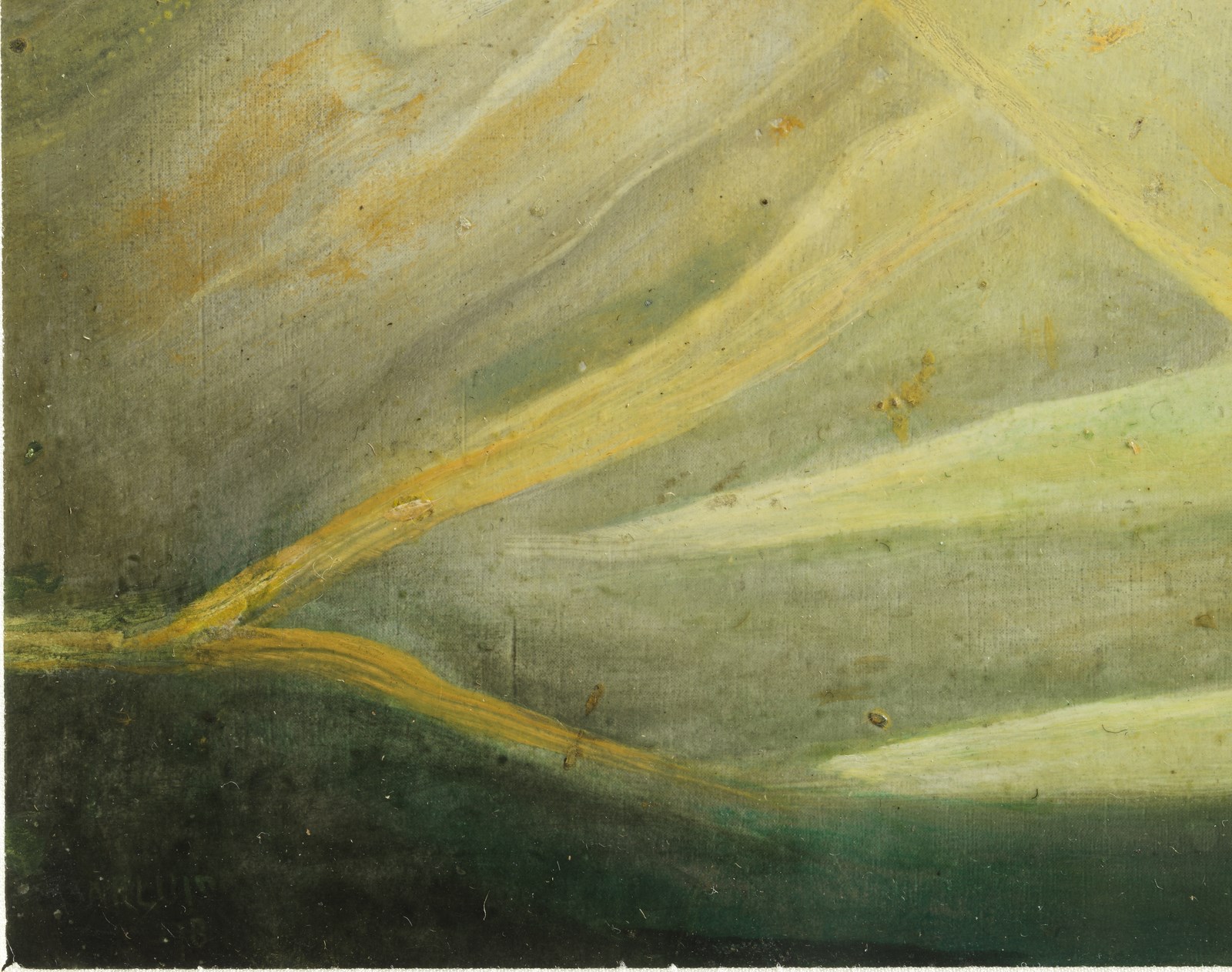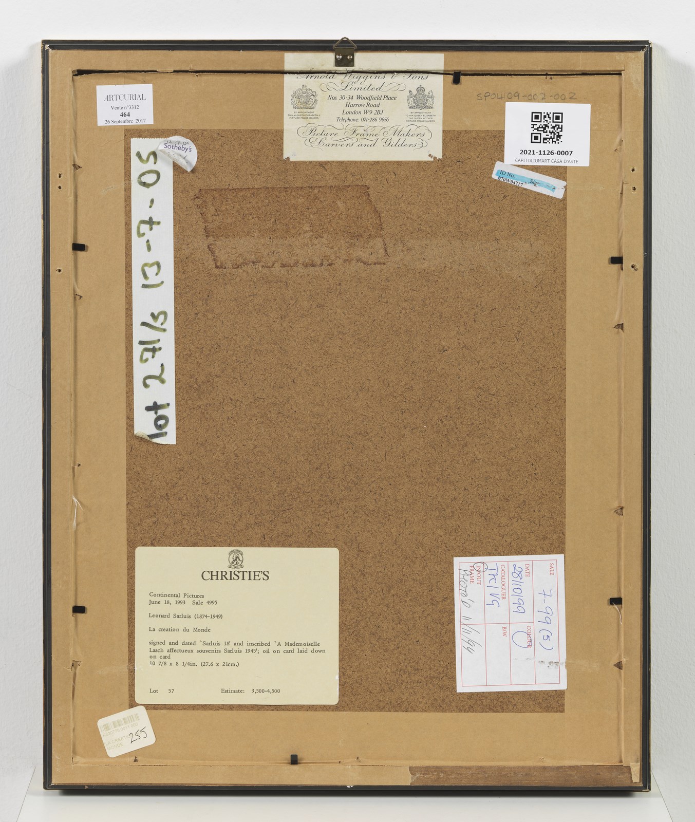 SARLUIS LÉONARD (1874 - 1949) La Trinità. Olio su carta su cartoncino. Cm 21,00 x 27,60. Firmato e datato 1918 in basso a sinistra. Dedicato al retro.