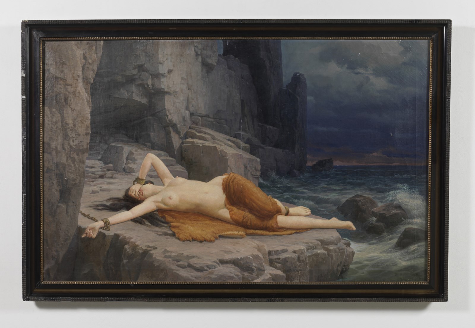 ROTHAUG ALEXANDER (1870 - 1946) Andromeda. Olio su tela . Cm 147,00 x 93,00. Scritta al retro sul telaio in alto a sinistra "dieser bild est gemald von der maler Rothaug". Cornice presente