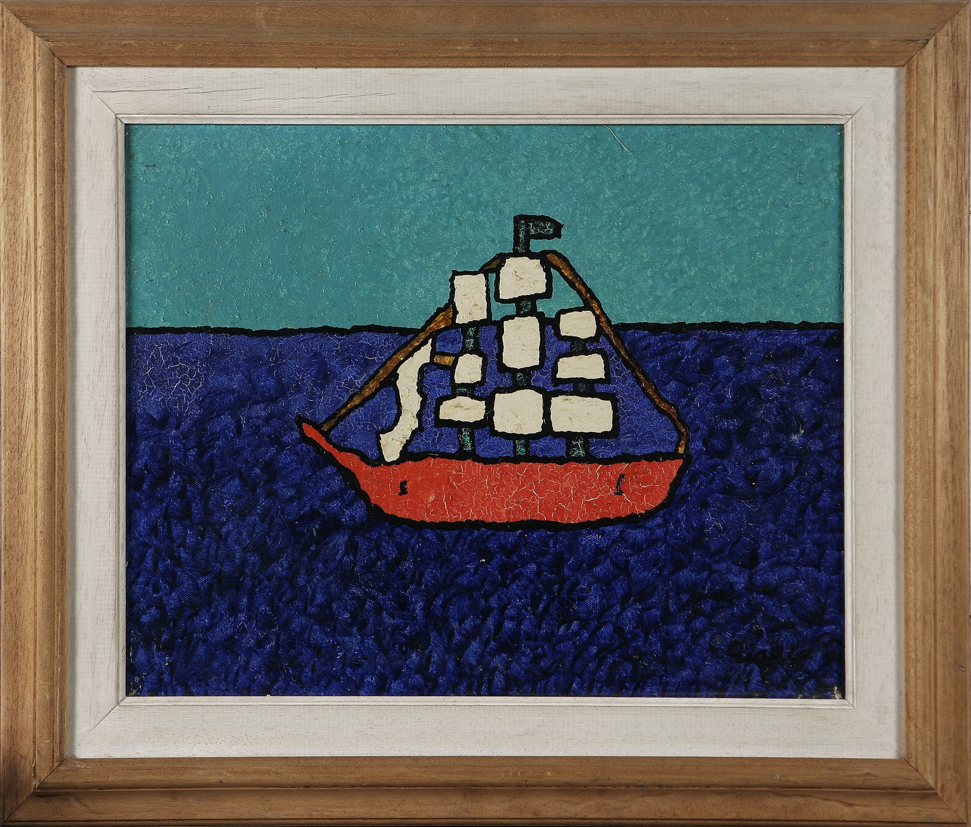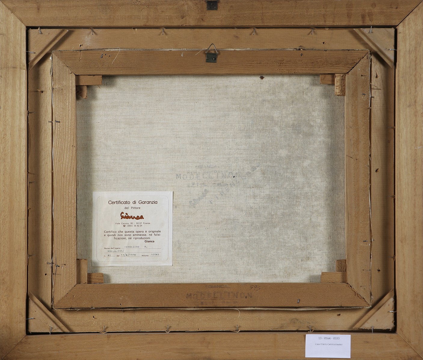 GIANCA Modellino. 1974. Tecnica mista su tela. Cm 50,00 x 40,00. Al retro certificato di garanzia dell'opera e timbro dell'artista. Cornice presente