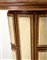 Coffee table with circular top and overturned truncated cone support on a cylindrical frame base. Milan, 1940ca. Different woods edged and veneered, panels and bands covered in parchment. (h 56.5 cm.; d 60 cm.) (slight defects)