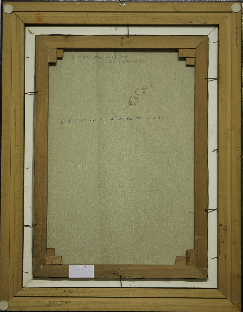 FANTUZZI ELIANO (1909 - 1987) Senza titolo. Olio su tela . Cm 50,00 x 70,00. Firma in basso a sinistra. Al retro firma. Cornice presente