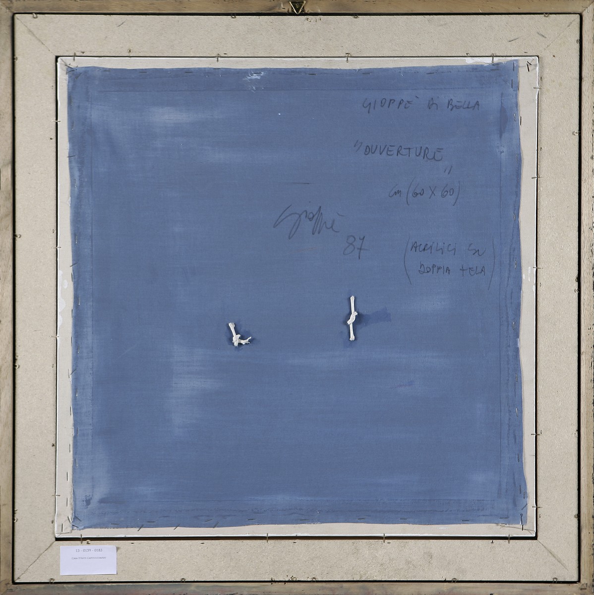 DI BELLA GIOPPE (1945 - 2007) Ouverture. 1987. Acrilici su tela doppia. Cm 60,00 x 60,00. Al retro firma, titolo e data. . Cornice presente
