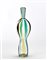 Large bottle vase model "4404". Venini, 1951. Blown glass with vertical bands applied in the color combination "America", crystal, dark amethyst, green and straw yellow. Hourglass body with flattened sections rotated by 90 ° respectively. (h 43 cm.) (defects)