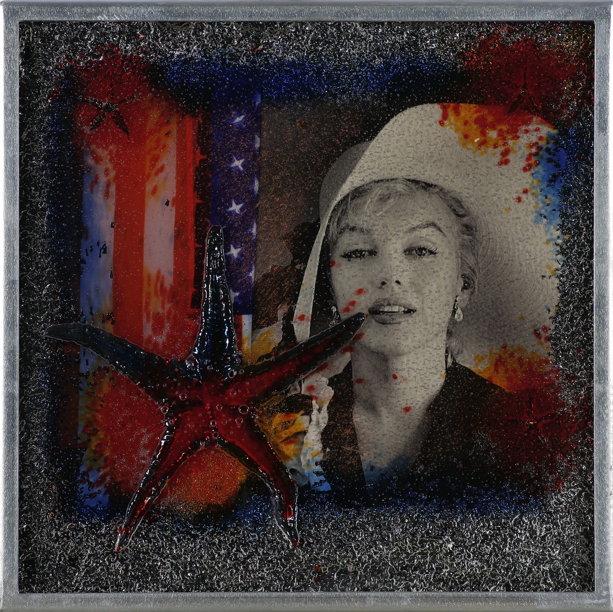 RONDA OMAR (n. 1947) Marylin frozen. 2011. Plastica. Cm 50,00 x 50,00. Al retro firma e data. Autentica dell'artista su fotografia con relativo numero d'archivio. Cornice presente