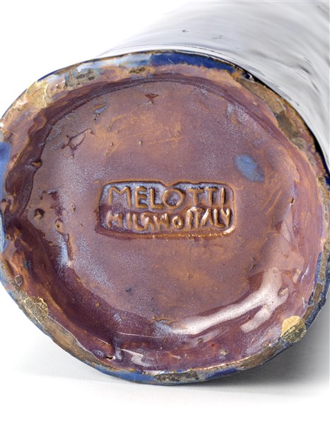 Scultura in ceramica smaltata nei toni del blu. 1960ca. Marcata "MELOTTI MILANO ITALY" sotto la base. (h cm 56; d cm 11) (lievi difetti e piccoli restauri non professionali)