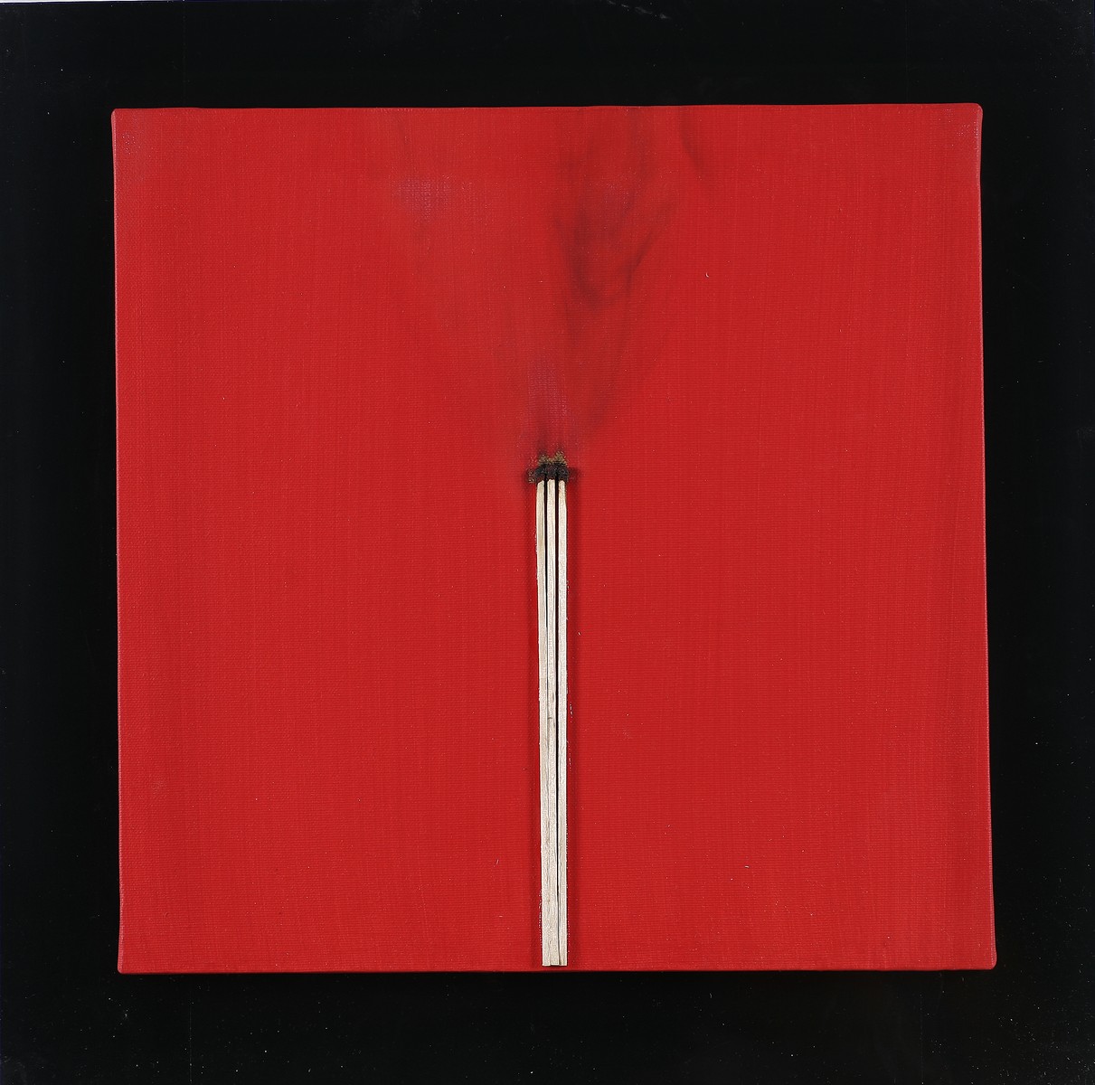 AUBERTIN BERNARD (n. 1934) Dessin de feu. 2010. Fiammiferi bruciati su tela. Cm 35,00 x 35,00. In teca di plexiglass. Al retro firma. Autentica dell'artista su fotografia. Cornice presente