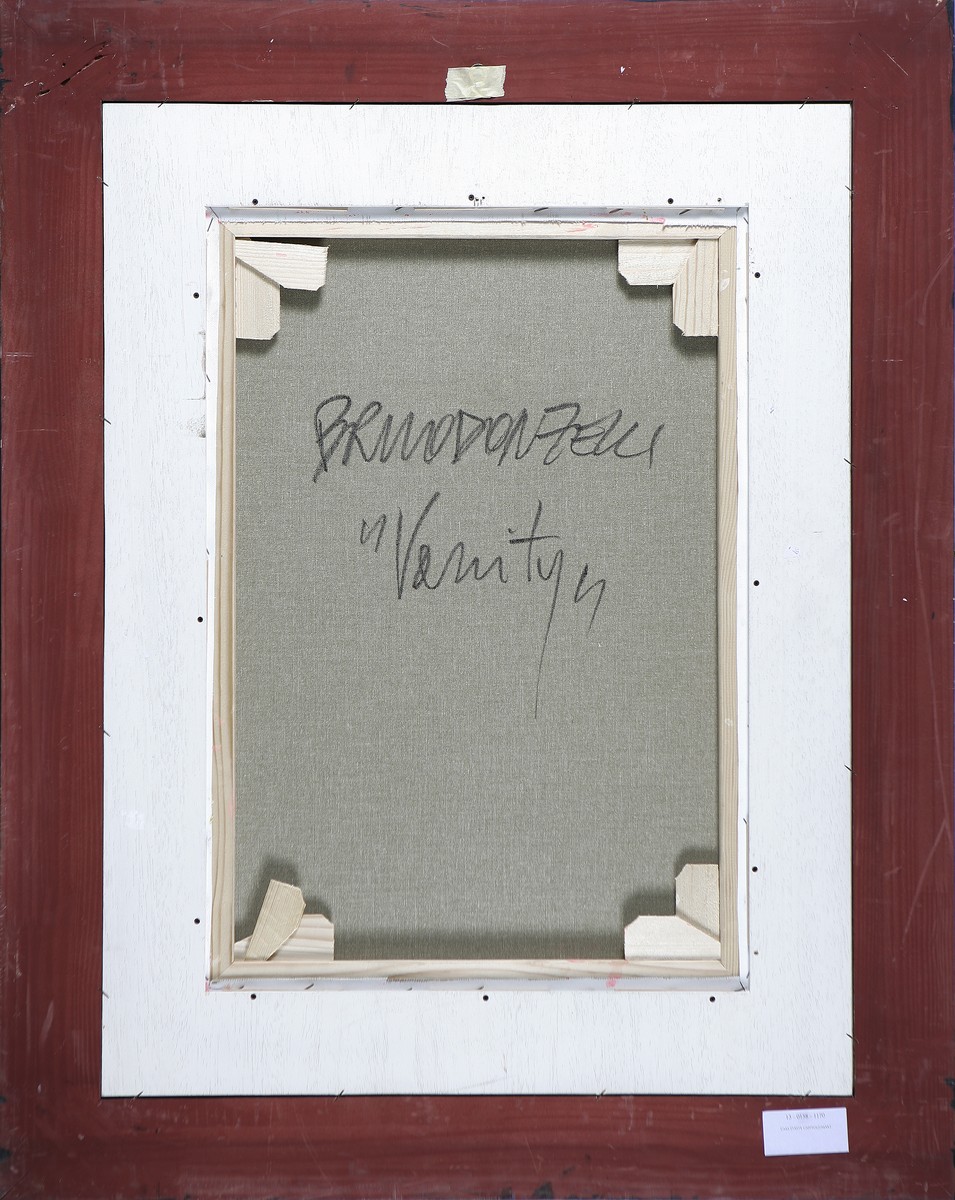 DONZELLI BRUNO (n. 1941) Vanity. Tecnica mista su tela. Cm 50,00 x 70,00. Firma in basso a destra. Al retro firma e titolo. Autentica dell'artista su fotografia. Cornice presente