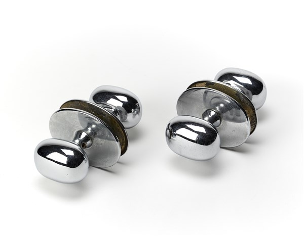Lot of two pairs of handles model "M3 Patata". Produced by Azucena, Milan, drawing from 1959, specimens from the mid-1980sChrome plated brass. (slight defects and small losses)