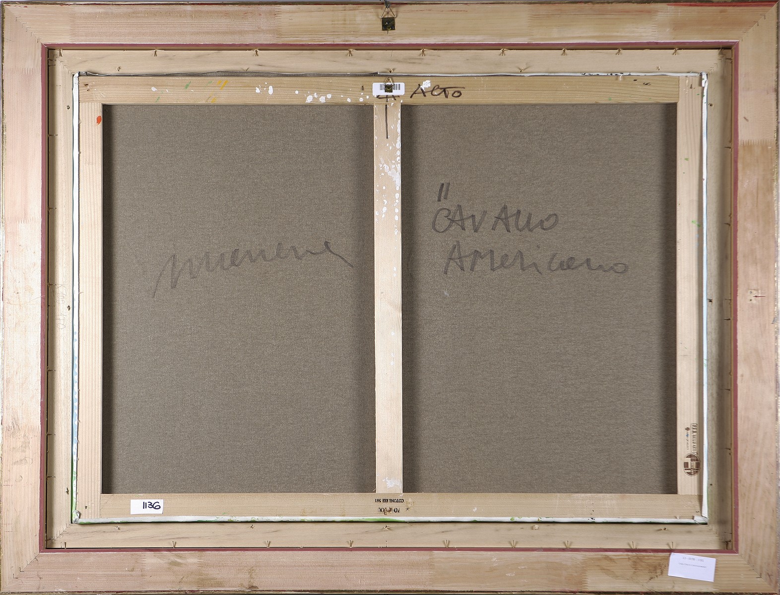 MANERA ENRICO (n. 1947) Il cavallo americano. Olio su tela . Cm 100,00 x 70,00. Titolo al centro. Al retro titolo e firma. Autentica dell'artista su fotografia. Cornice presente