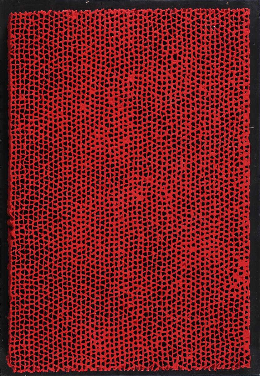 AUBERTIN BERNARD (n. 1934) Alveoles. 1990. Tecnica mista su tavola. Cm 38,00 x 54,00. In teca di plexiglass. Al retro titolo, data e firma. Autentica dell'artista su fotografia. Cornice presente