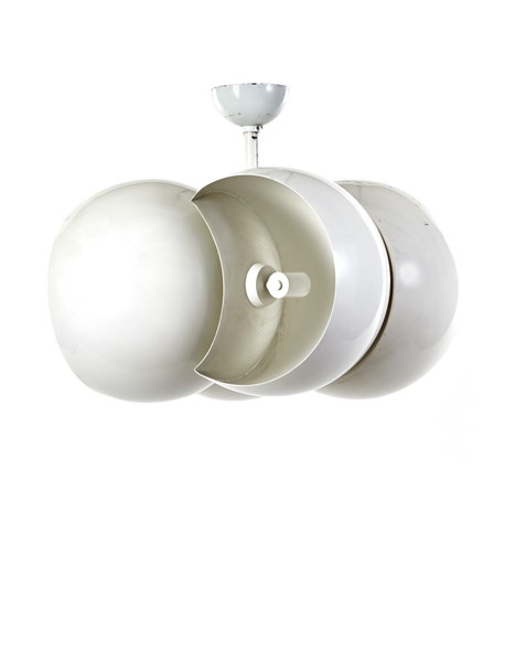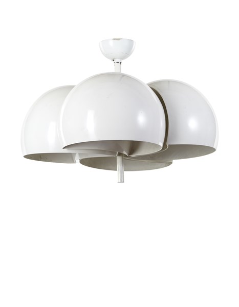 Lampada a sospensione modello "Ecatombe". Produzione Artemide, Milano, 1970. Metallo laccato bianco. (h cm 60) (difetti)