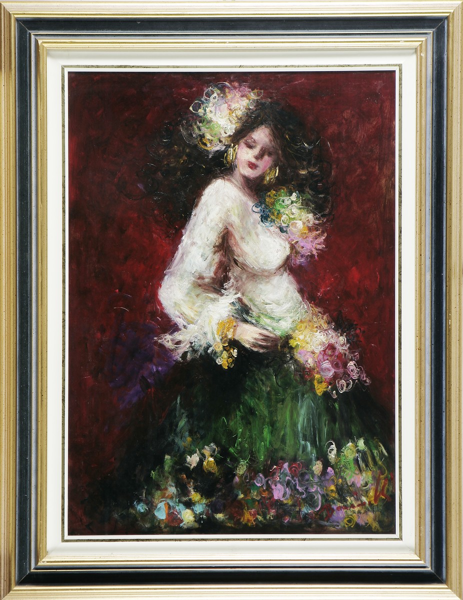 Lotto 825 | BONCINELLI GIUSI Zingara rossa. 1991. Olio su tavola. Cm 50,00 x 70,00. Firma...