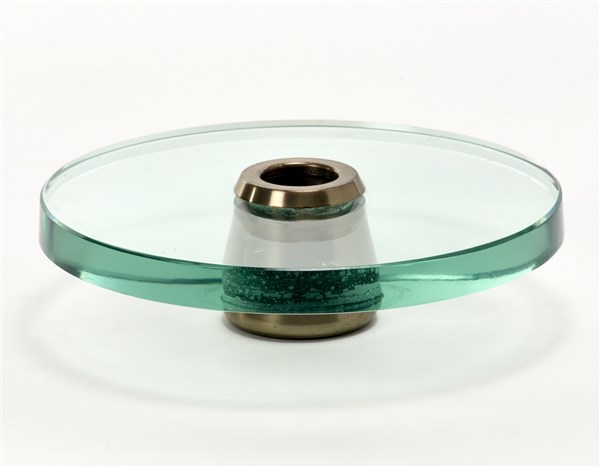 Nickel-plated brass and very thick crystal centerpiece / vase soliflore. Milan, 1950s. (h 6 cm.; d 22.5 cm.) (slight defects)