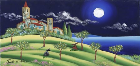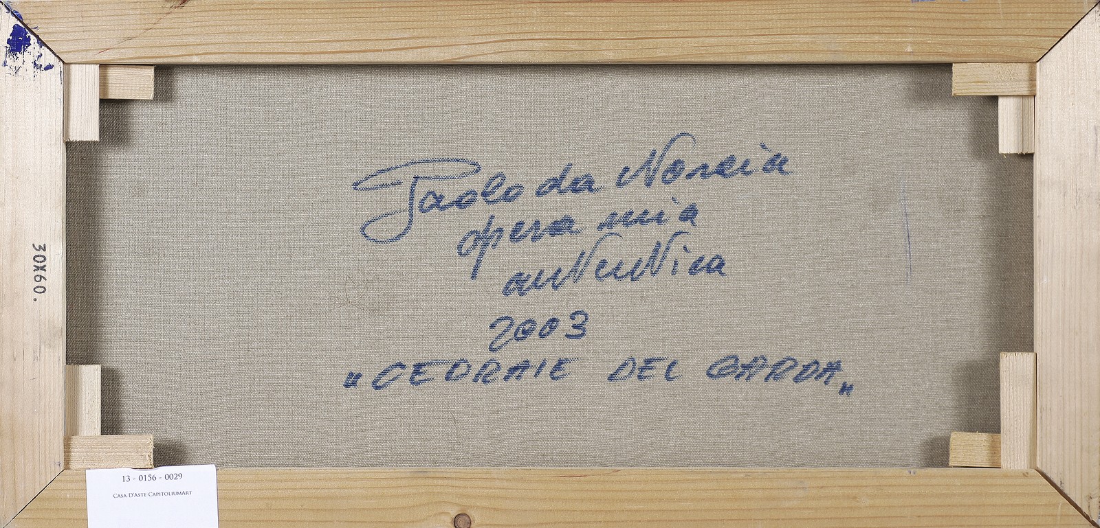 DA NORCIA PAOLO (n. 1953) Cedraie del Garda. 2003. Olio su tela . Cm 60,00 x 30,00 x 2,00. Firma in basso a sinistra. Al retro titolo, firma per autentica, data e timbro Paolo Da Norcia.