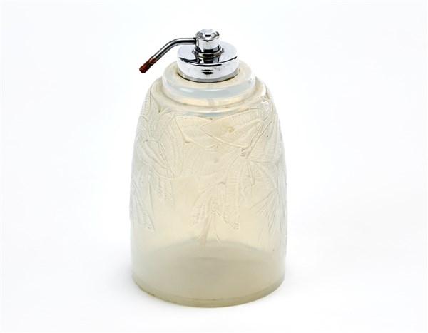 René Lalique Portaprofumo in vetro bianco opalescente soffiato in stampo con dec