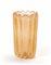 Seguso Vaso cilindrico in vetro soffiato rosa costolato e corroso. Murano, secon