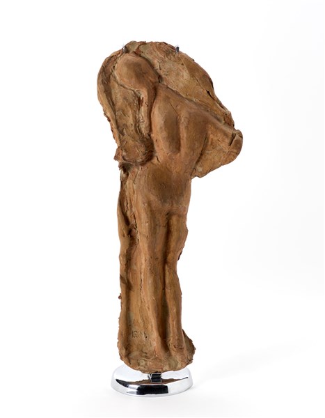 Terracotta high-relief mounted on a metal support depicting a naked woman from the back. Milan, 1930s. Signed "E.M." to the foot. (h 40 cm.) (slight defects)