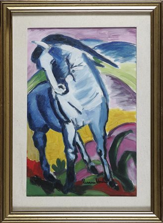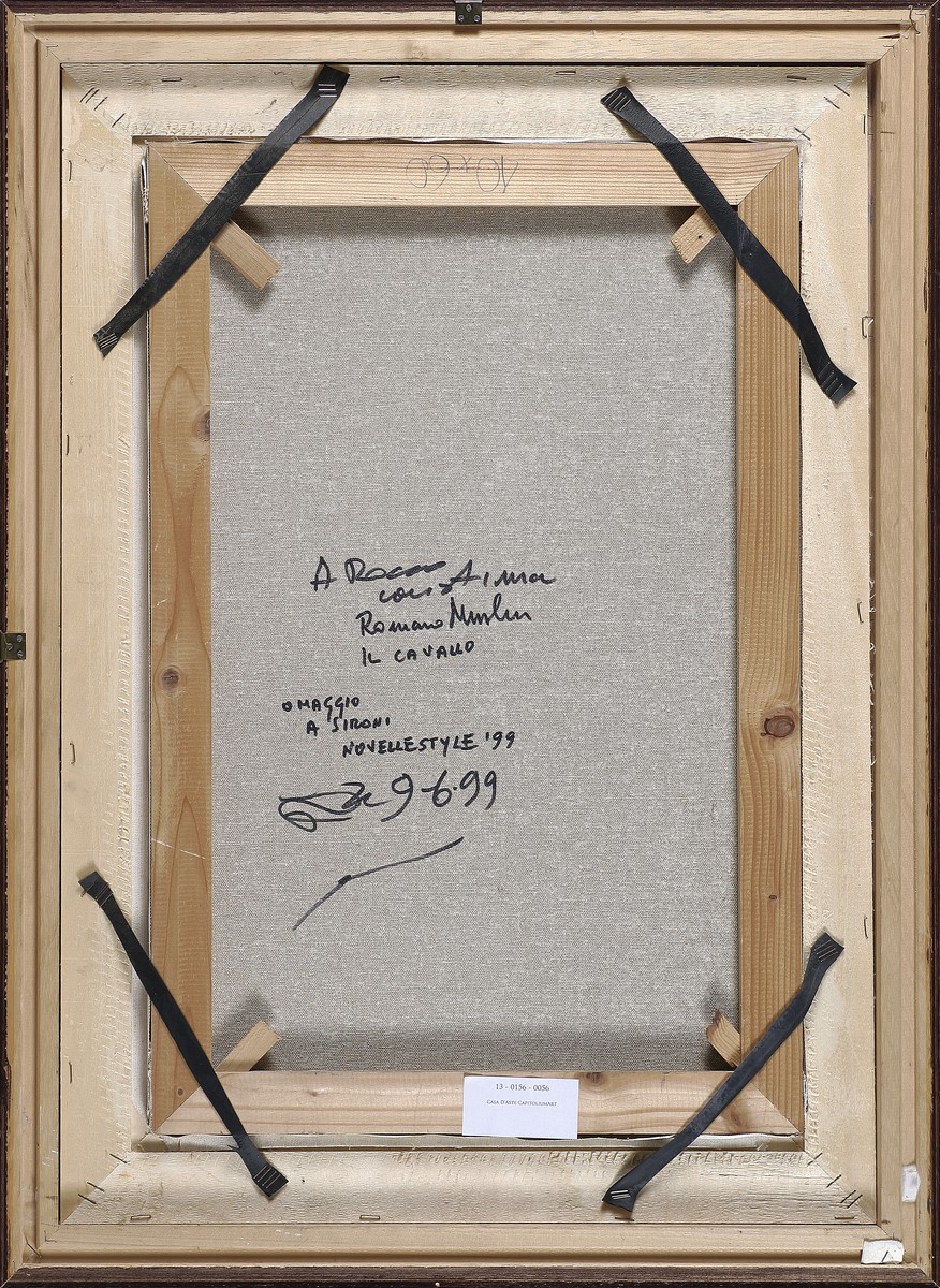 MUSSOLINI ROMANO (1927 - 2008) Il cavallo. 1999. Olio su tela . Cm 60,00 x 40,00. Firma in basso. Al retro firma, data e dedica. Cornice presente
