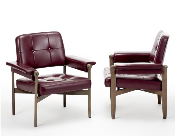 Lotto 597 | Busnelli Export Coppia di poltroncine rivestite in vinilpelle color amaranto, st