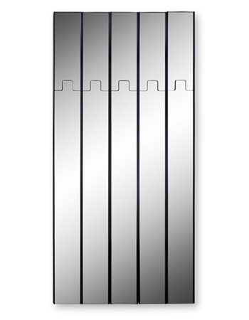 Equipped wall composed of five clothes hanger elements model "Gronda". Produced by Elco, Venice, 1970s. Plastic, mirror and laminate. (100x200 cm.)