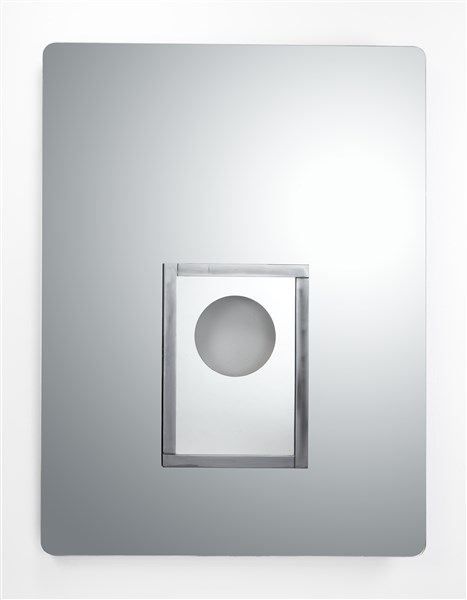 Mirror panel designed to cover the fire extinguisher compartment based on the "Fasce Cromate" series. Produced by Azucena, Milan. (120x159 cm.)
