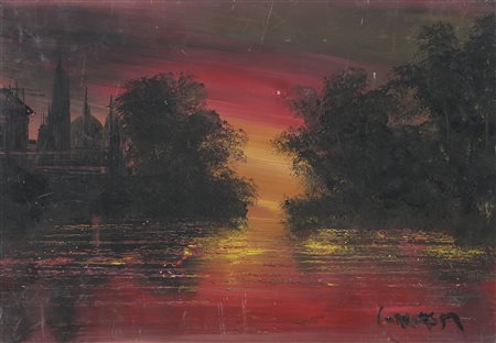 CORRIAS MAURO EMILIO (1941 - 2010) Senza titolo. 2000. Olio su tavola. Cm 50,00 x 35,00. Firma in basso a destra. Al retro firma e data.