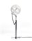 Lampada da terra con struttura in acciaio, diffusore sferico in vetro trasparen