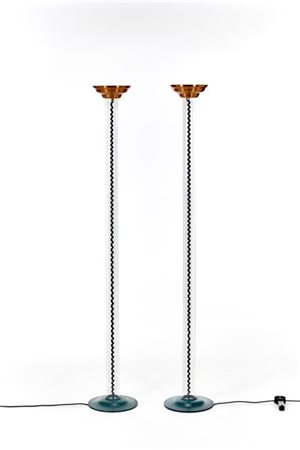 Coppia di lampade da terra di gusto post-moderno, con base in metallo verniciat