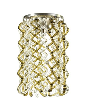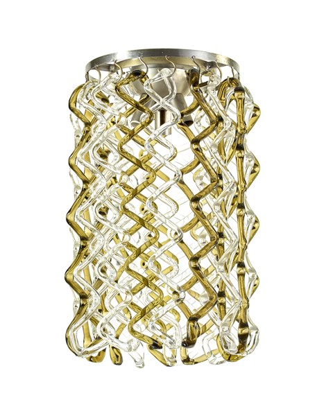 Suspension lamp with metal structure and wavy-shaped pendants in transparent colorless and amber glass. 1970s. (h 53 cm.)