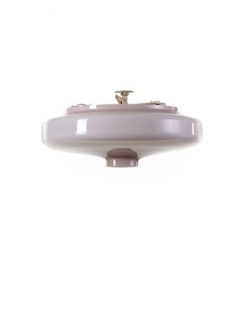 Ceiling lamp in pink coated blown glass. White painted metal substructure. 1950s. (d 45 cm.)