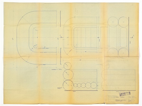 Heliocopy of the drawing for the "Blow" inflatable chair, variant MS88-90. Milan, 1967. On a scale of 1: 4, dated 11/7/67 and bearing the cartouche of the architectural firm. (64x84 cm.) (defects)
