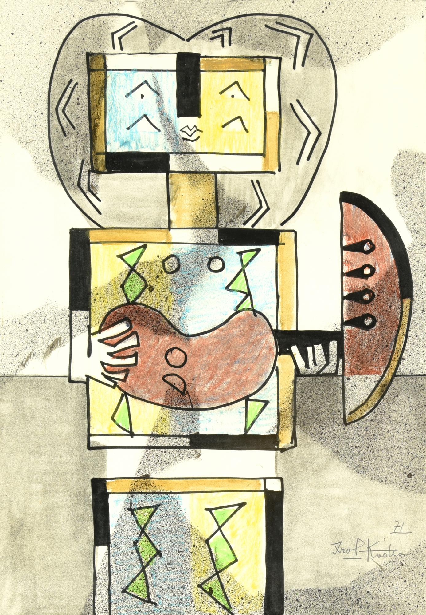 Ibrahim Kodra (1918 - 2006) COMPOSIZIONE tempera su carta applicata su tela,...