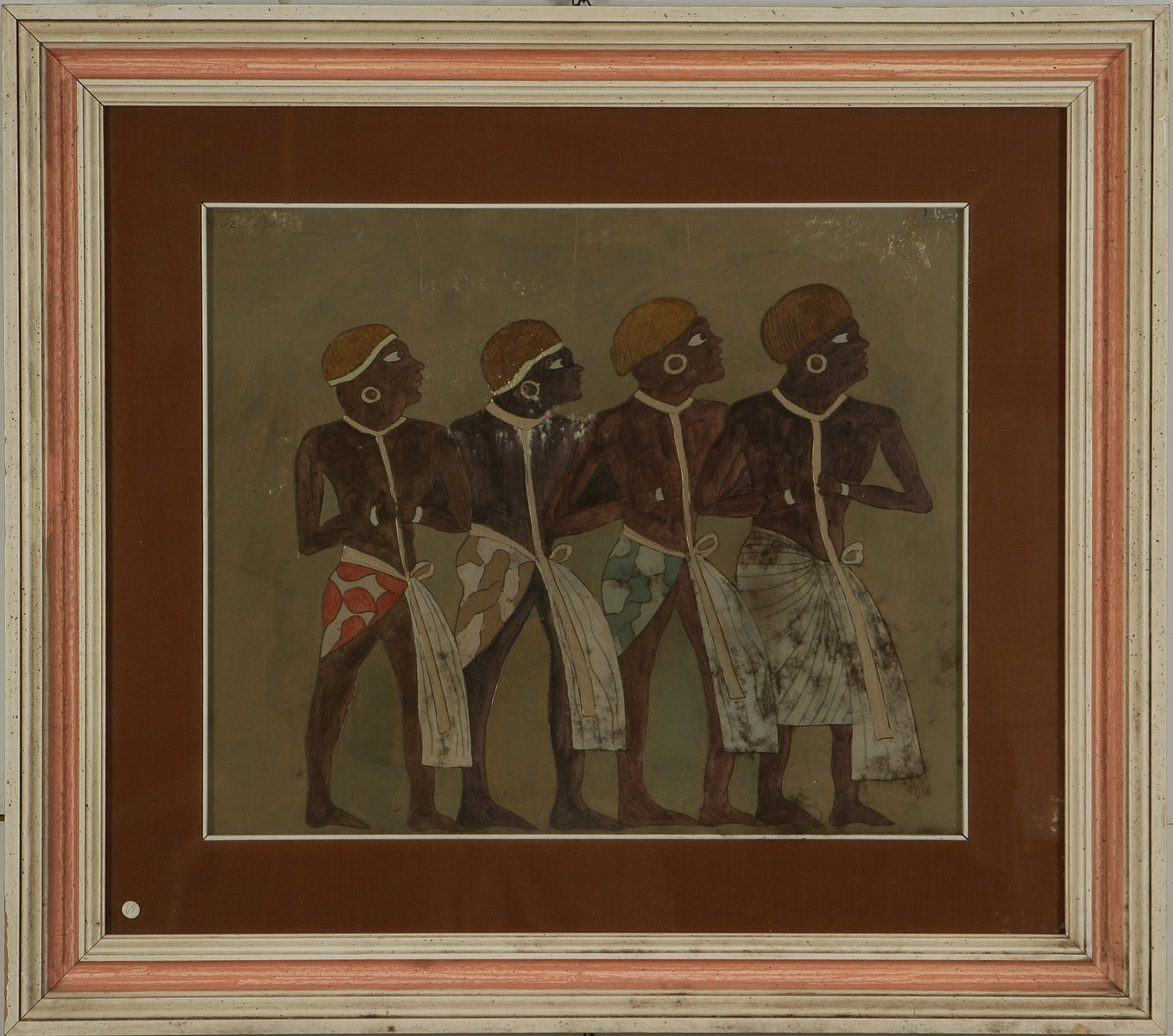 VIRGI A. Uomini nubiani che si accingono a pagare il tributo. 1974. Tempera...