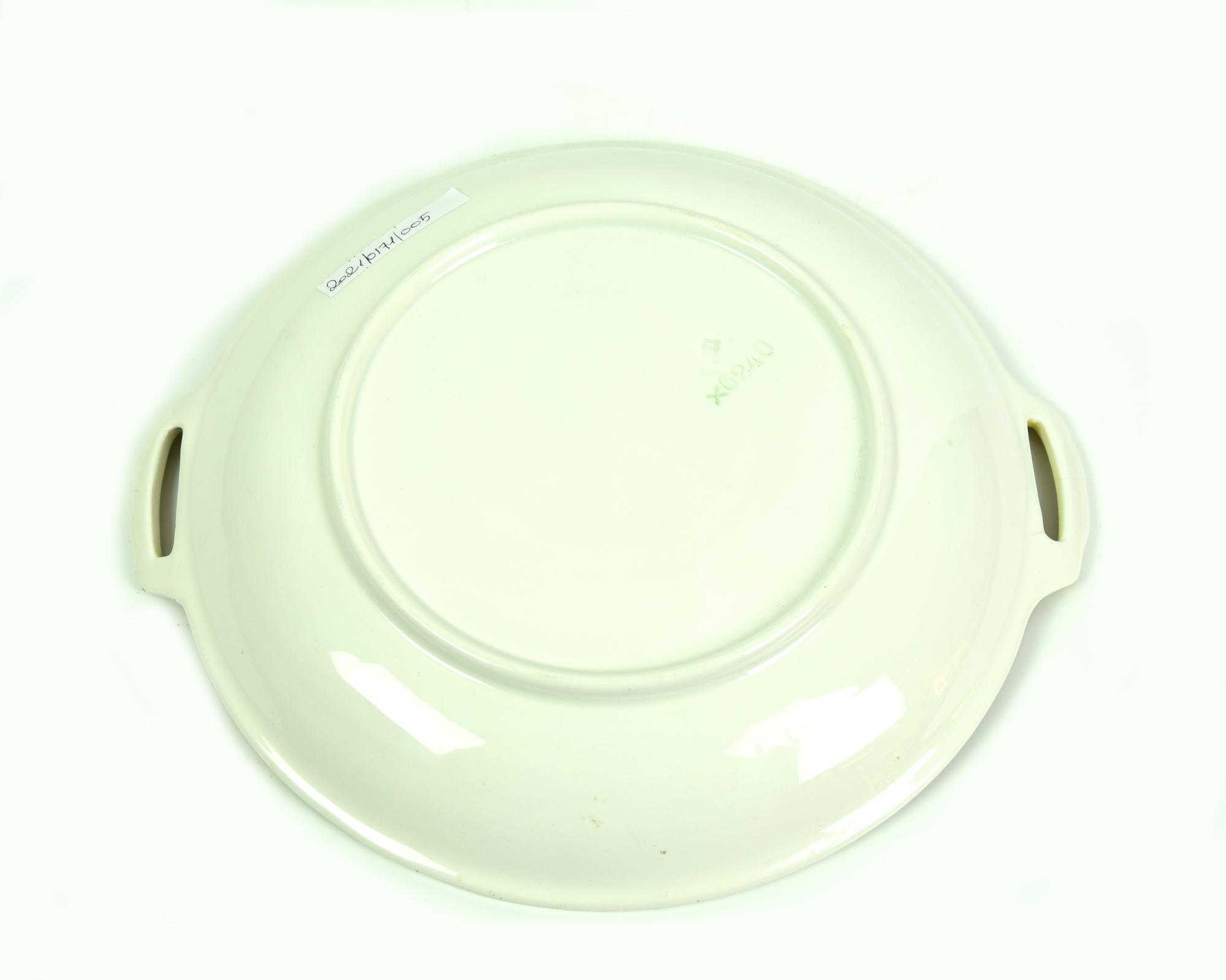 terraglia con decorazione a spruzzo (stritzdekor), diametro cm 24,5, con manici cm 27,5