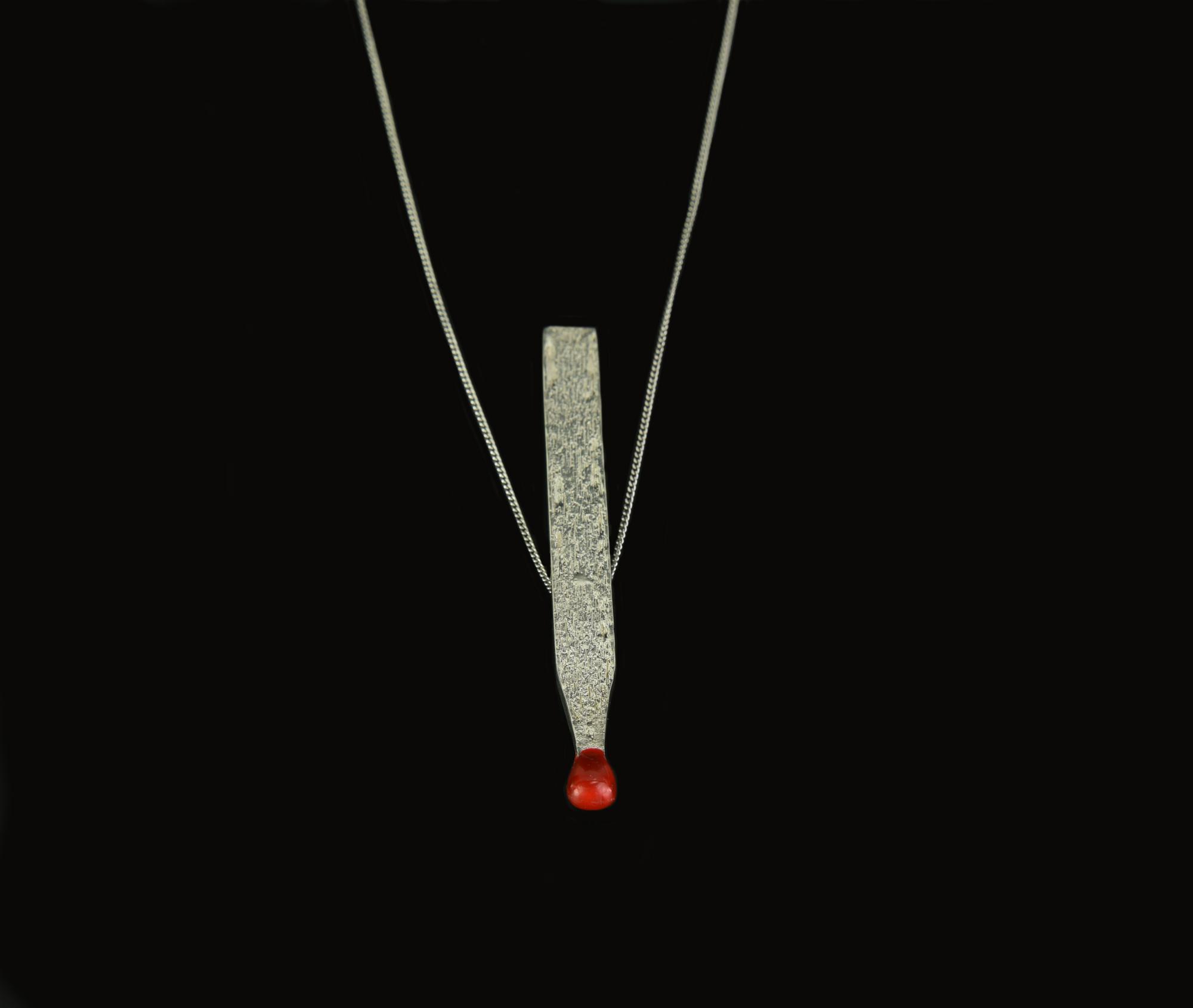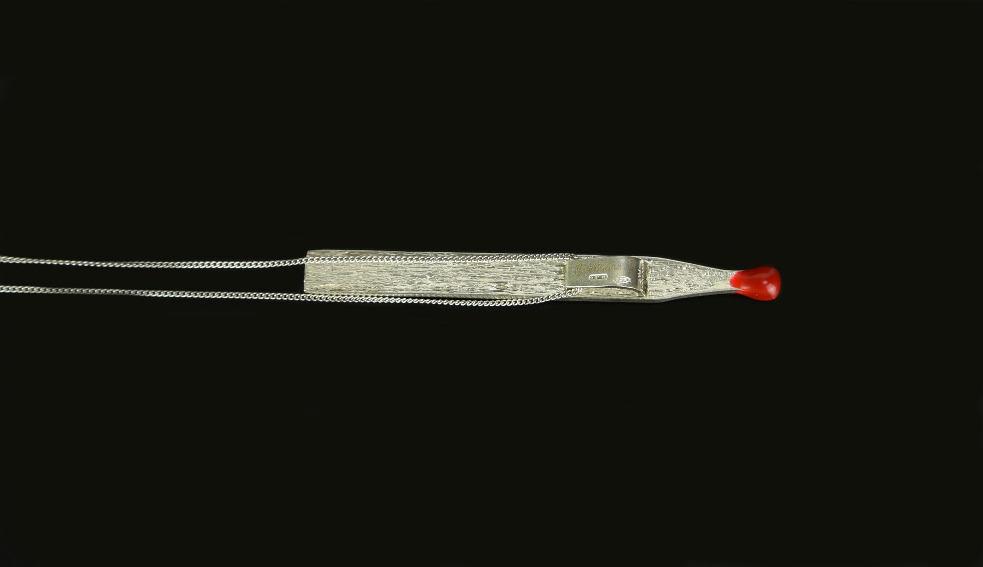 Raymond Hains (1926 - 2005) CIONDOLO FIAMMIFERO in argento 925, gr. 10, cm...