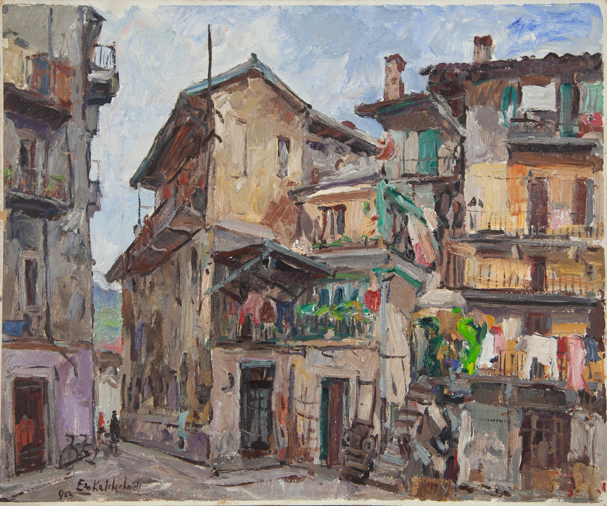 EMILIO KALCHSCHMIDT(INTRA 1902 - PIACENZA 1983)' UL BOECC'olio su cartoneanno 1963cm 50x60firmato e datato in basso a sinistrafirmato, datato e titolato al retro
