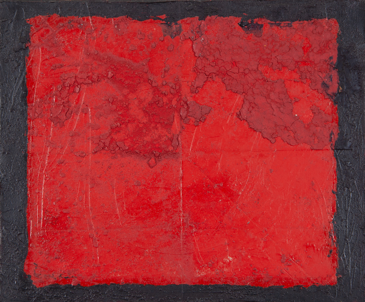 PAOLO LAUDISA'Rosso tramonto di fuoco'tecnica mista su telacm 25x30opera firmata e titolata al retro
