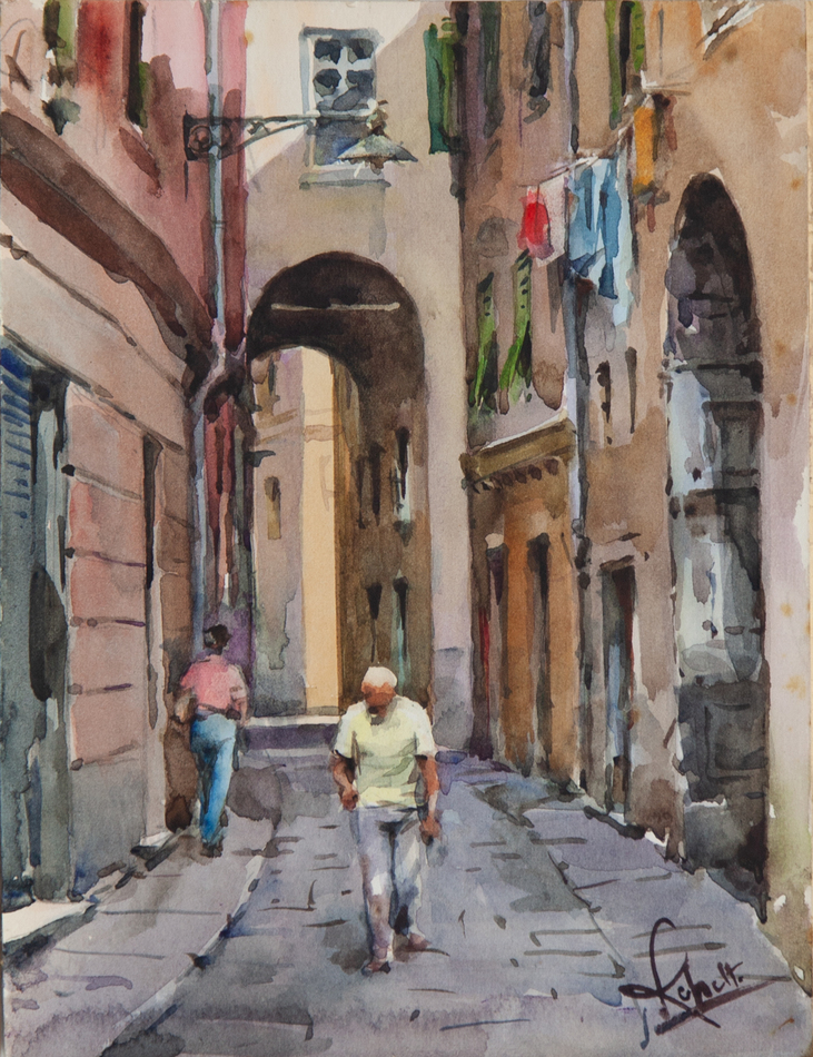 REPETTO GELLIO'Via dietro il coro di S. Cosimo'acquerello su cartone telatocm 24x18firmato in basso a destraal retro etichetta dell'Artista