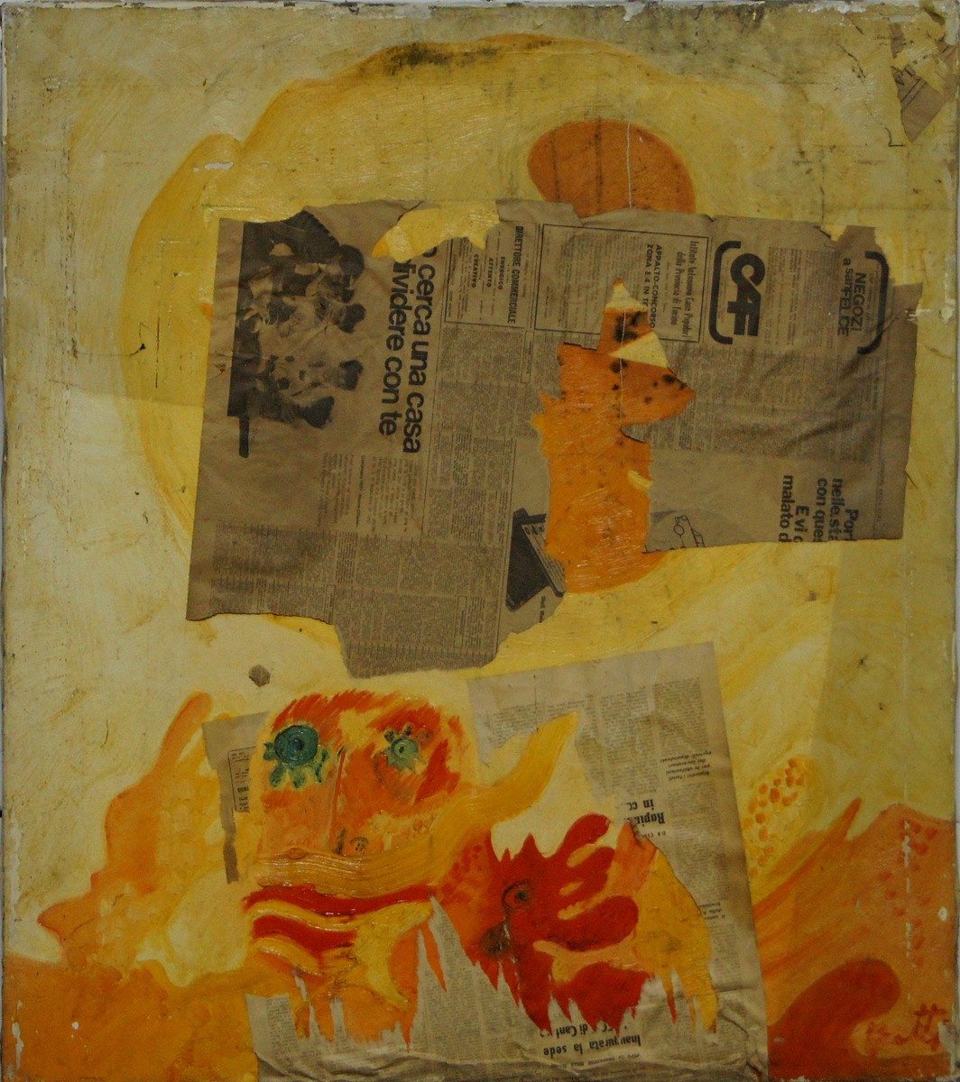 Lotto 883 | FRATTI FRANCO (1939 - 2002) Torta con pezzi di giornale. Olio e collage su...