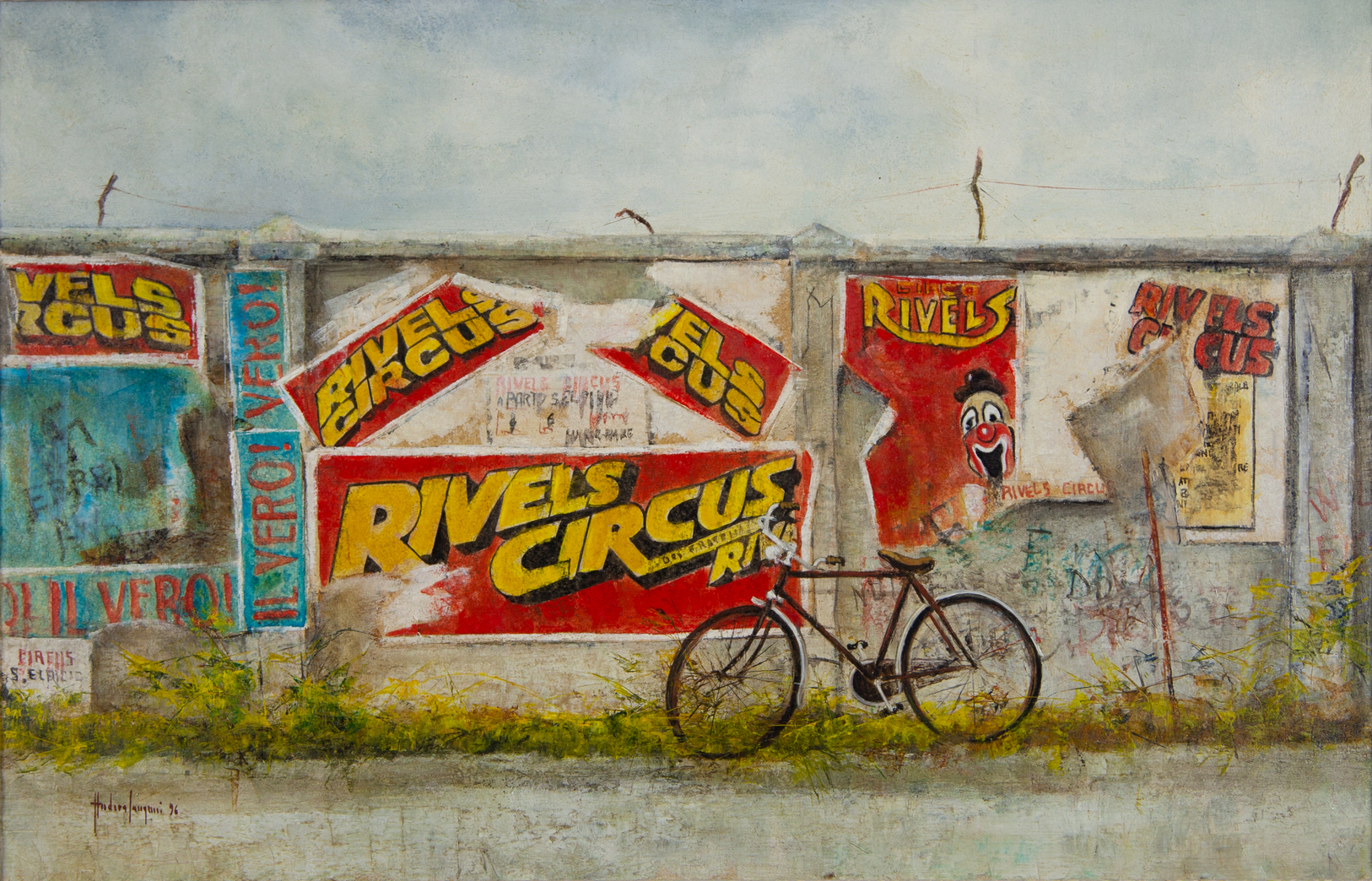 ANDREA CANGEMI'Bicicletta lungo il muro'tecnica mista su cartaanno 1996cm 44x69firmata e datata in basso a sinistrafirmata al retroOpera pubblicata sul Catalogo Andrea Cangemi