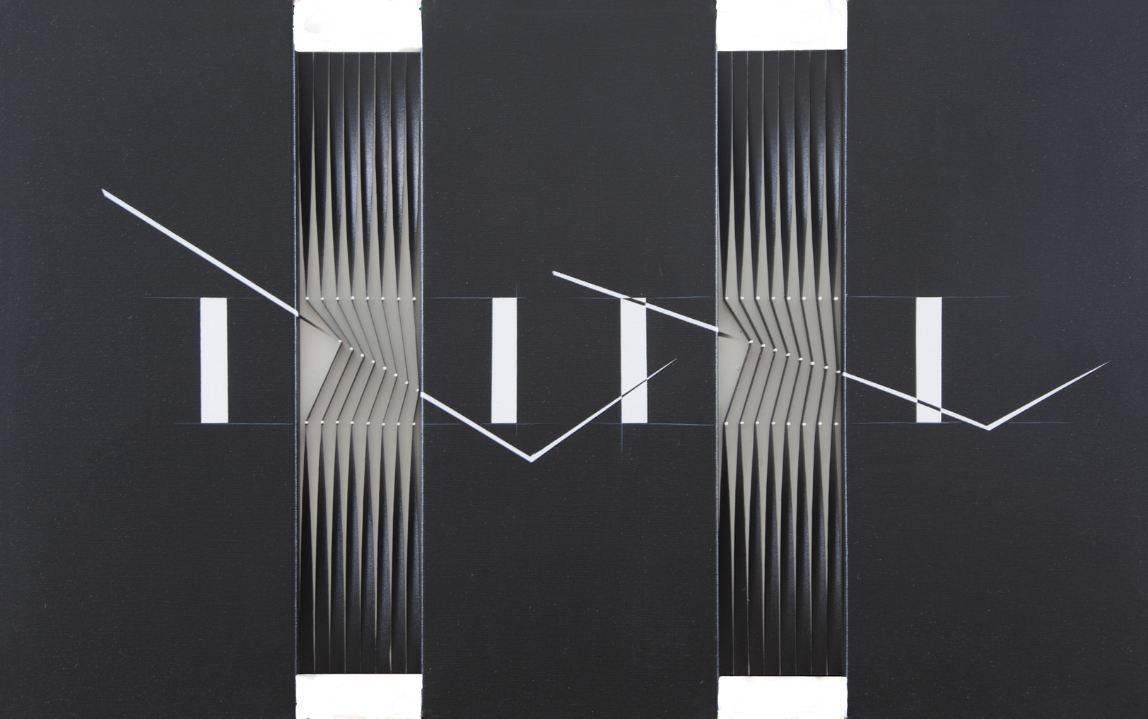 ALBERTO BIASI(Padova 1937)'Trittico'Tecnica mista (acrylique & torsions de lamelles)/assemblage de boisanno 2012cm 60x97x4al retro: firma, titolo e dataArchivio Alberto Biasi