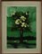 ALISCAR Fiori bianchi fondo verde. Olio su tavola. Cm 50,00 x 70,00. Firma in...