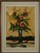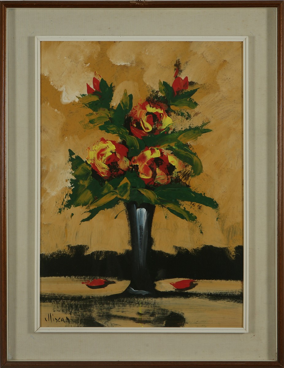 ALISCAR Fiori bianchi fondo giallo. Olio su tavola. Cm 50,00 x 70,00. Firma in basso a sinistra. Cornice presente