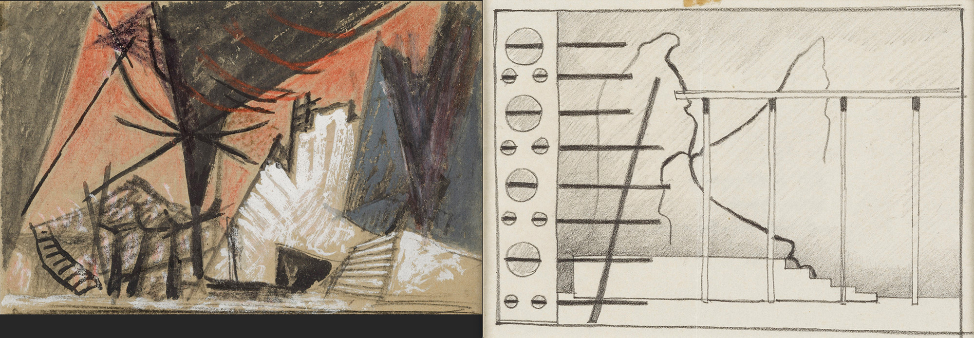 Enrico Prampolini Gli Idoli - Bozzetto di scena, 1948 tempera e matita su...