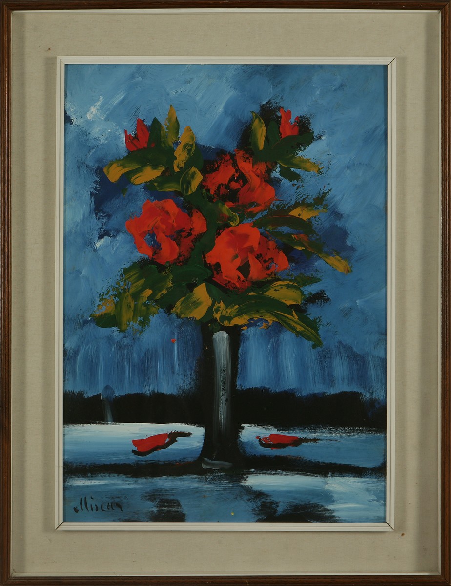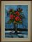 ALISCAR Fiori rossi fondo blu. Olio su tavola. Cm 50,00 x 70,00. Firma in basso a sinistra. Cornice presente