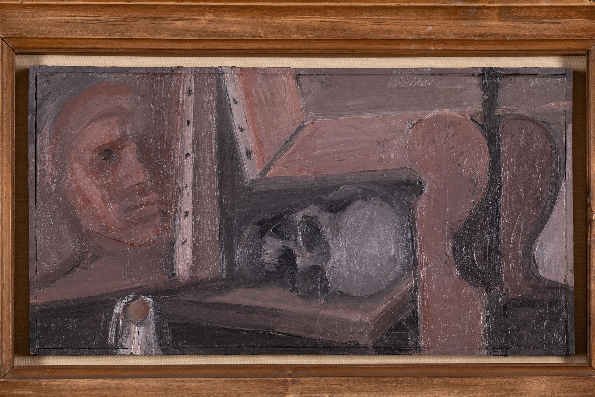 Franco Francese Autoritratto con teschio, 1981 olio su tela cm 53,5x28...