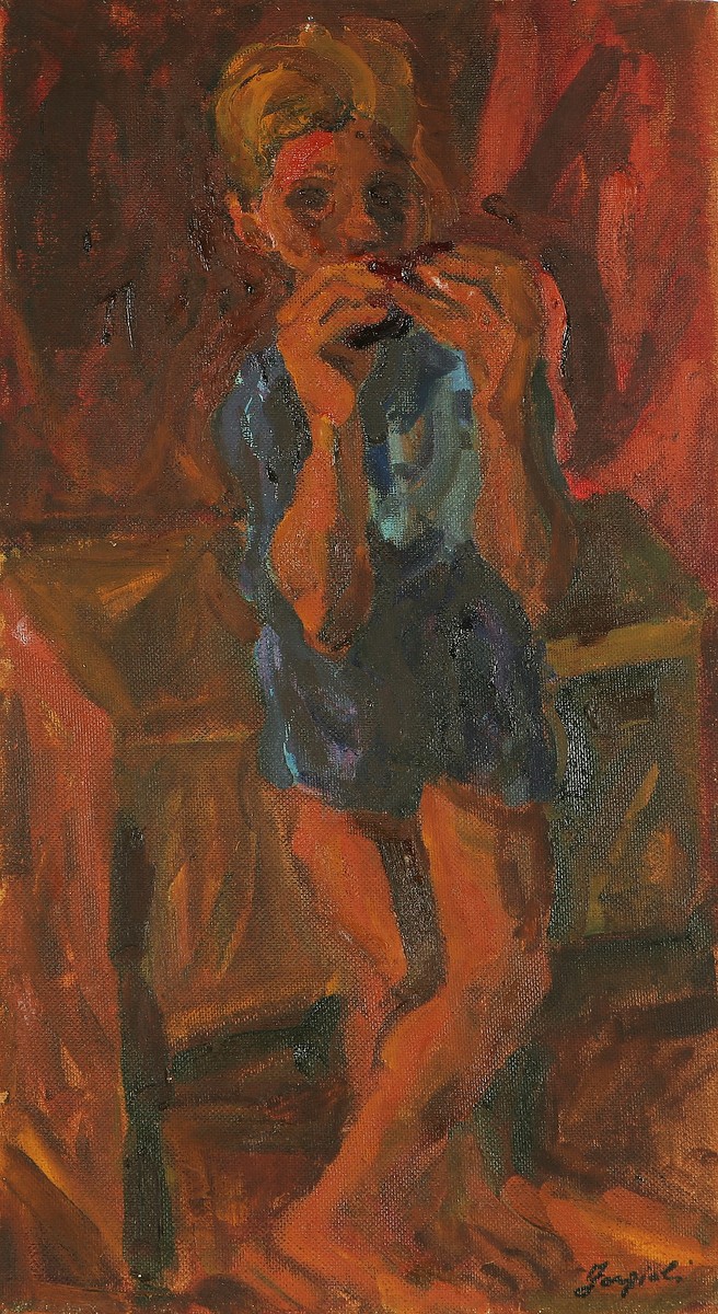FORGIOLI ATTILIO (n. 1933) Bimba. 1957. Olio su compensato. Cm 37,00 x 68,00....