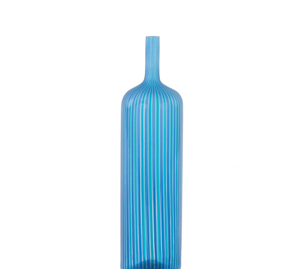 Vaso in vetro a canne azzurre e verdi alternate. Murano, Venini S.A. su...