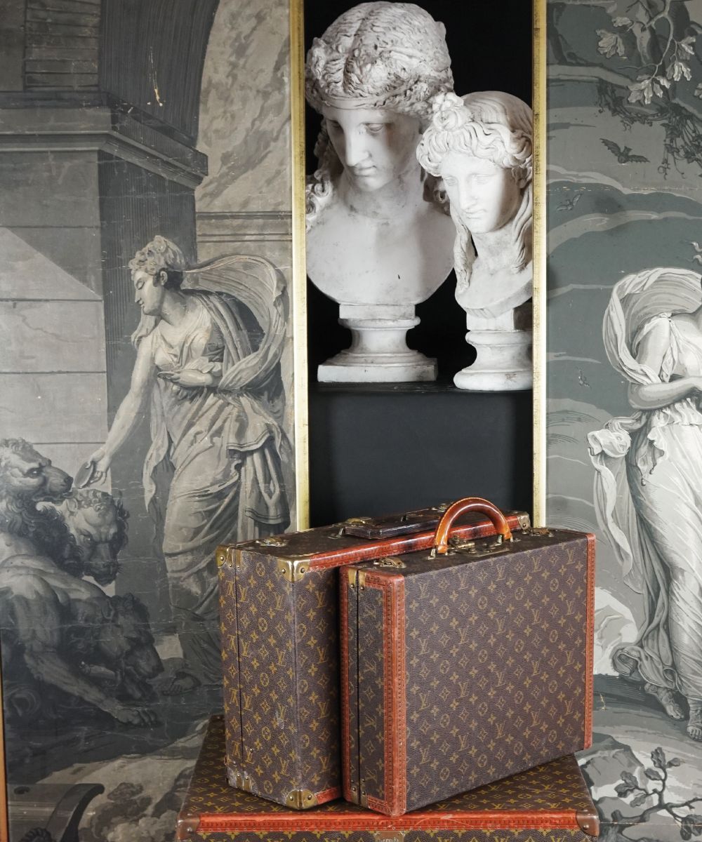 Louis Vuitton set in tela Monogram con rinforzi in cuoio composto da un baule...