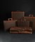 Louis Vuitton set in tela Monogram con rinforzi in cuoio composto da un baule portascarpe (n. 955441) di cm. 68x53,5x23, due valigie rigide di due misure (una con n. 905998) di cm. 49,5x60x17 e di cm. 36,5x50,5x17,5, una valigetta portadocumenti di cm. 35x44x11 e una borsa da tennis di cm. 29x72x14.